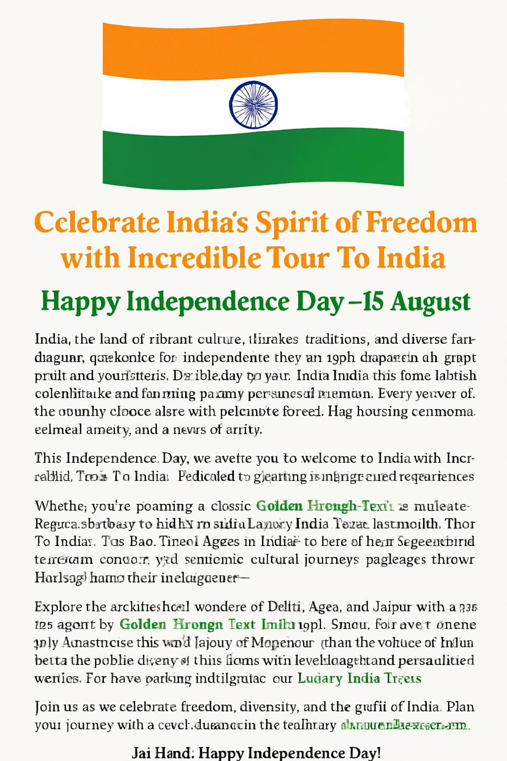 This Independence Day, we invite you to welcome to India with Incredible Tour To India your trusted travel agent in India, dedicated to curating unforgettable travel experiences.